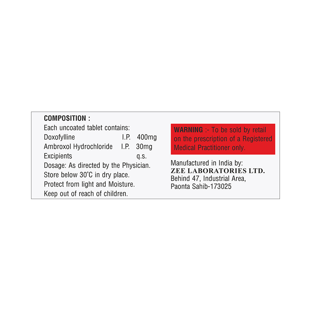 Salt Composition: Doxofylline (400mg) + Ambroxol (30mg)