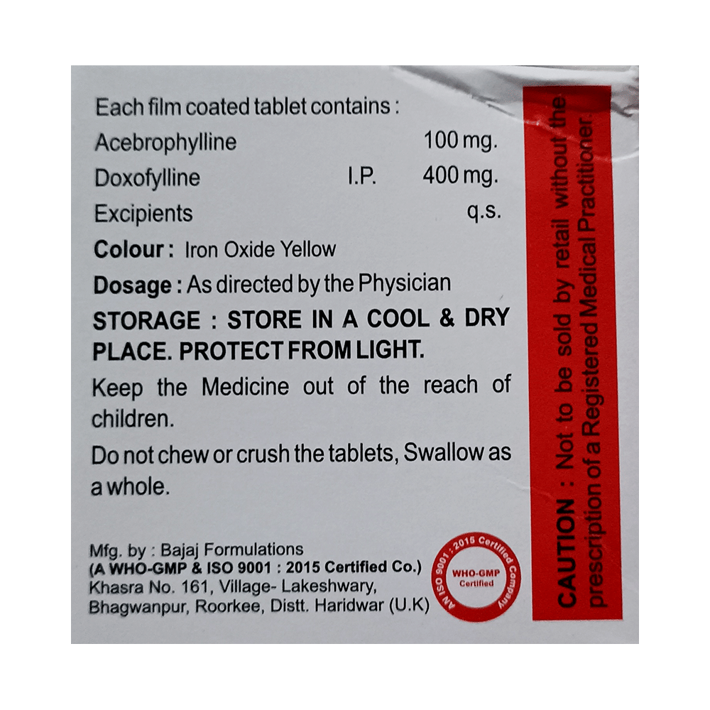 Salt Composition: Doxofylline (400mg) + Acebrophylline (100mg)