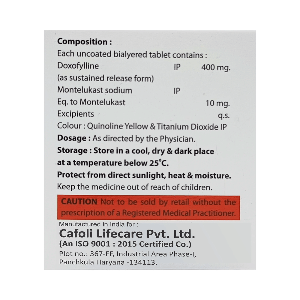 Salt Composition: Doxofylline (400mg) + Montelukast (10mg)