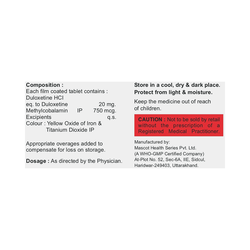 Salt Composition: Duloxetine (20mg) + Methylcobalamin (750mcg)