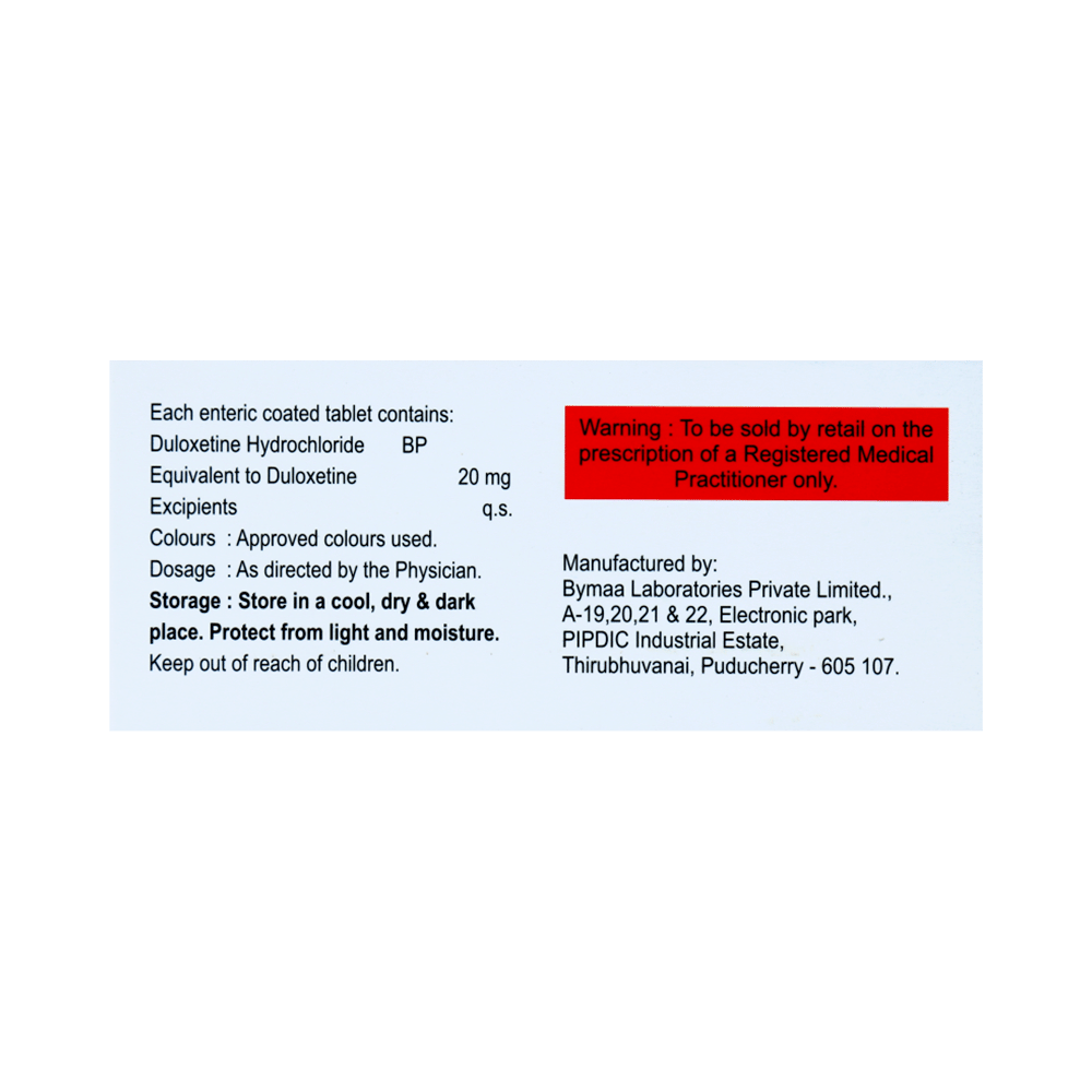 Salt Composition: Duloxetine (20 mg)