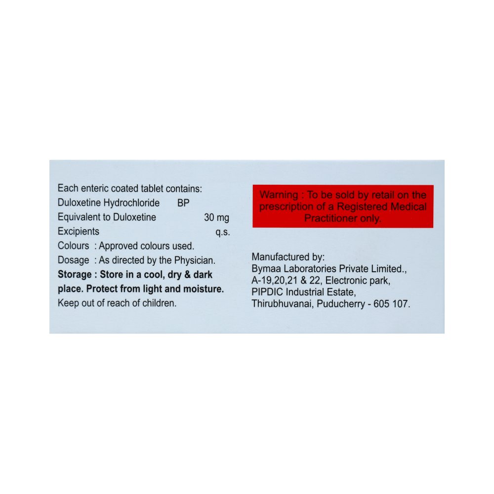 Dulogen 30 Tablet works by increasing the levels of chemical messengers (serotonin and noradrenaline), natural substances in the brain that help maintain mental balance and stop the movement of pain signals in the brain.