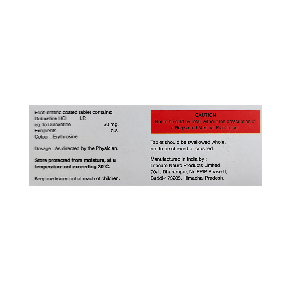 Salt Composition: Duloxetine (20mg)