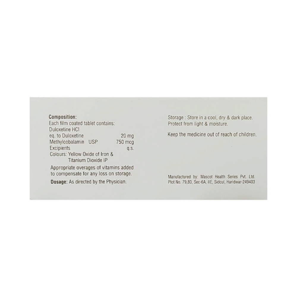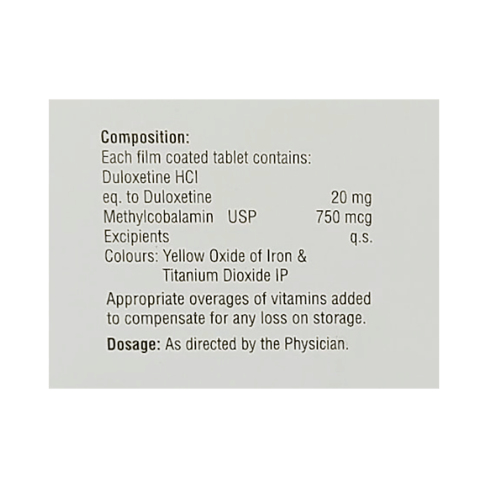 Salt Composition: Duloxetine (20mg) + Methylcobalamin (750mcg)