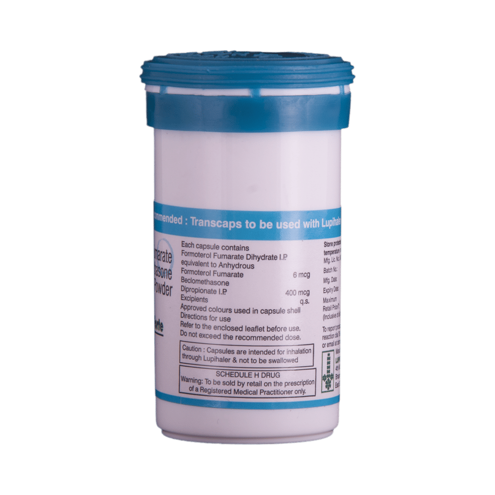 Duomate Forte Transcaps is a combination of two medicines: Beclometasone and Formoterol. Beclometasone is a steroid. It gets absorbed into the cells of the inner surface of the nose and works by blocking the production of certain chemical messengers that cause inflammation (swelling) and allergies. This relieves blocked or runny nose, sneezing and sinus discomfort. Formoterol is a long-acting bronchodilator which works by relaxing the muscles in the airways and widens the airways. Together, they make breathing easier.