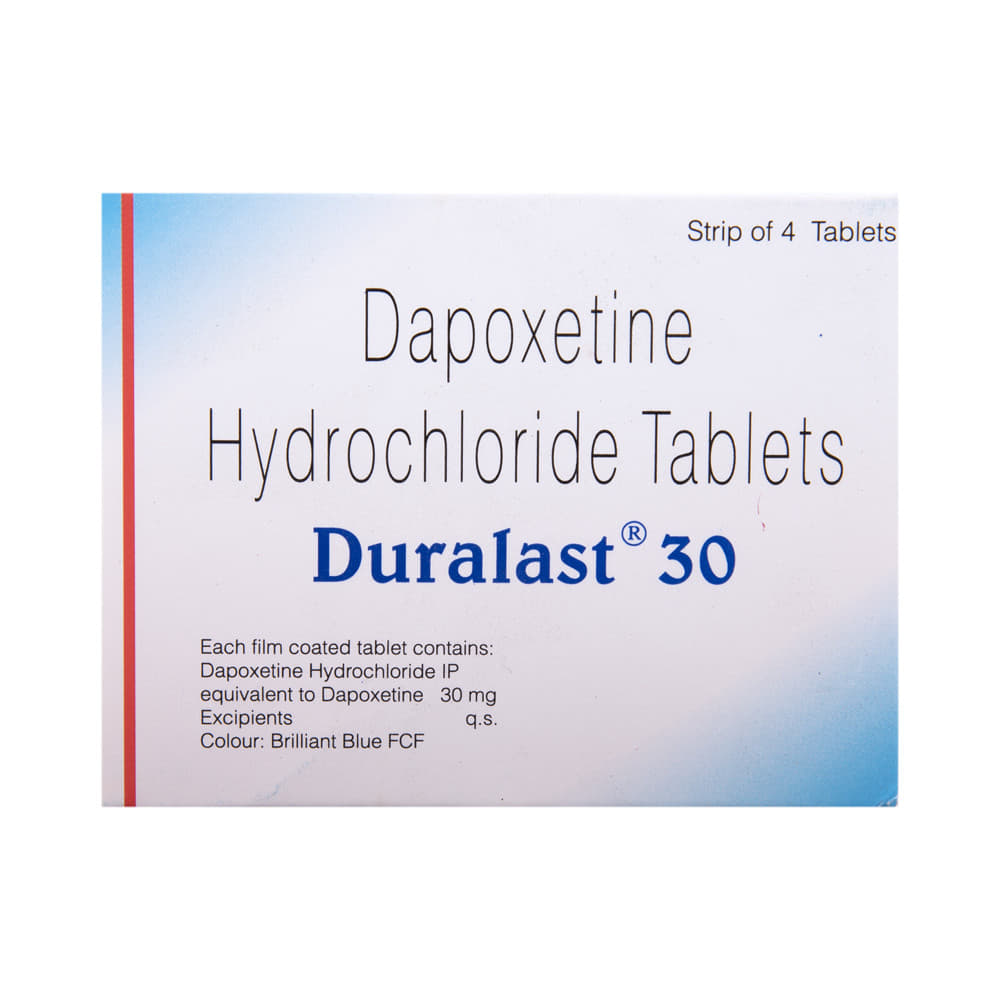 Duralast 30 Tablet is a medicine used to treat premature ejaculation in adult men. This medicine increases the time it takes to ejaculate and improves control over ejaculation. This helps to relieve the anxiety or frustration about fast ejaculation. Duralast 30 Tablet belongs to a group of medicines known as selective serotonin reuptake inhibitors (SSRI). It may be taken with or without food. This medicine should only be taken if you have been diagnosed with premature ejaculation by a doctor. It is usually advised to be taken 1 to 3 hours before anticipated sexual activity. Do not take it more than once a day. Follow your doctor’s instructions while taking this medicine.Some common side effects of this medicine include headache, dizziness, drowsiness, vomiting, nausea, indigestion, fatigue, increased sweating, and restlessness. Some people can develop erectile dysfunction with this medicine. Let your doctor know if any of the side effects persist or worry you. Do not drive or do anything that requires focus (eg. working with heavy machinery) until you know how this medicine affects you, as some people can develop dizziness and sleepiness as side effects.Do not take Duralast 30 Tablet if you have heart problems (like heart failure or problems with the heart rhythm), or have ever had depression or mania, or are currently taking medicines for depression known as MAO inhibitors. Before taking it, you should tell your doctor if you have epilepsy (seizure disorder or fits), liver or kidney disease, glaucoma, or have had dizziness/fainting (syncope) due to low blood pressure in the past. These may affect your treatment.