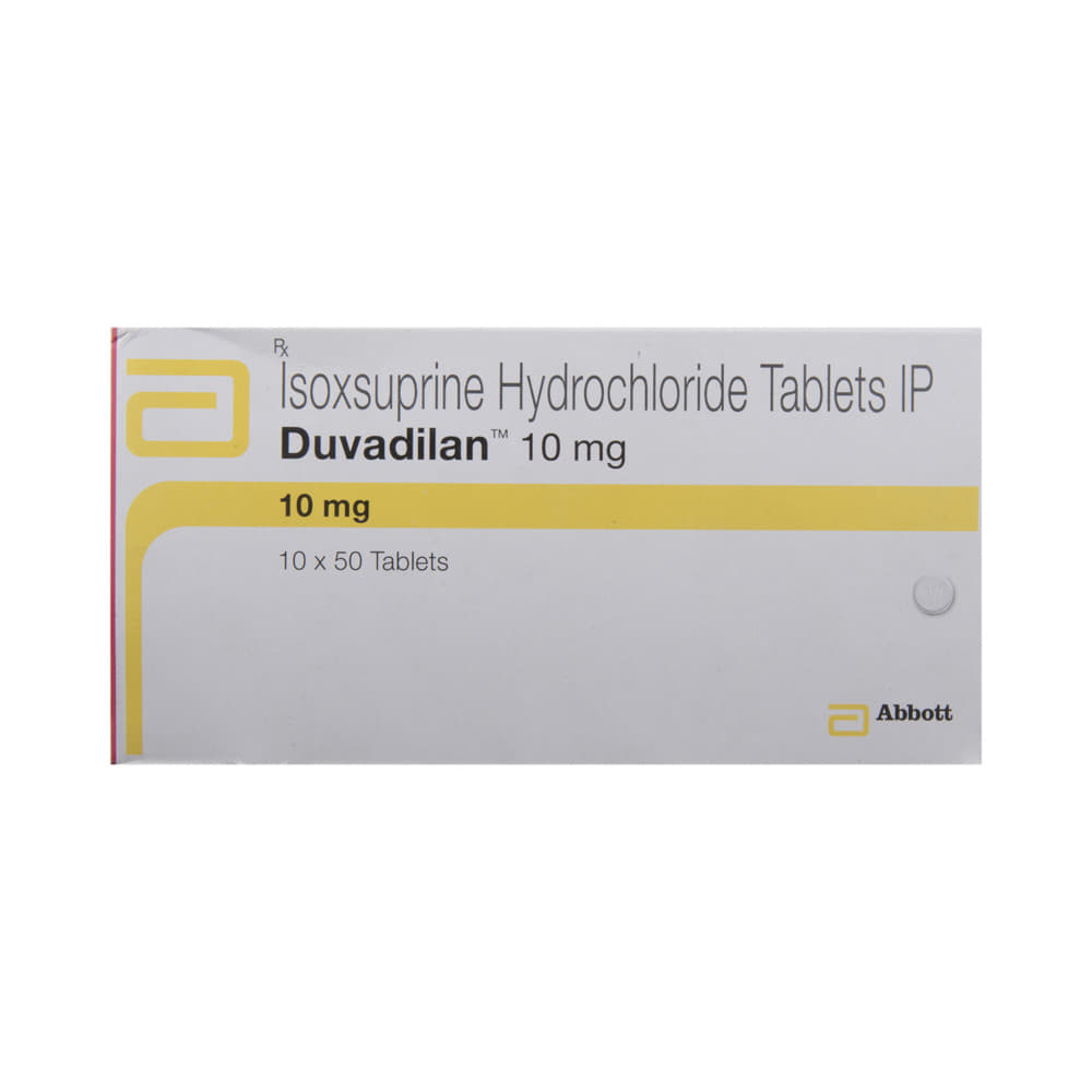 Duvadilan Tablet is a beta-adrenergic agonist. It works by preventing the contractions of the smooth muscles in the uterus. Thus, it relaxes the uterus to prevent premature labor. It also helps in widening blood vessels to increase blood flow, thereby improving blood circulation to certain parts of the body (such as the hands/feet, brain). Therefore, it also treats peripheral vascular disease.