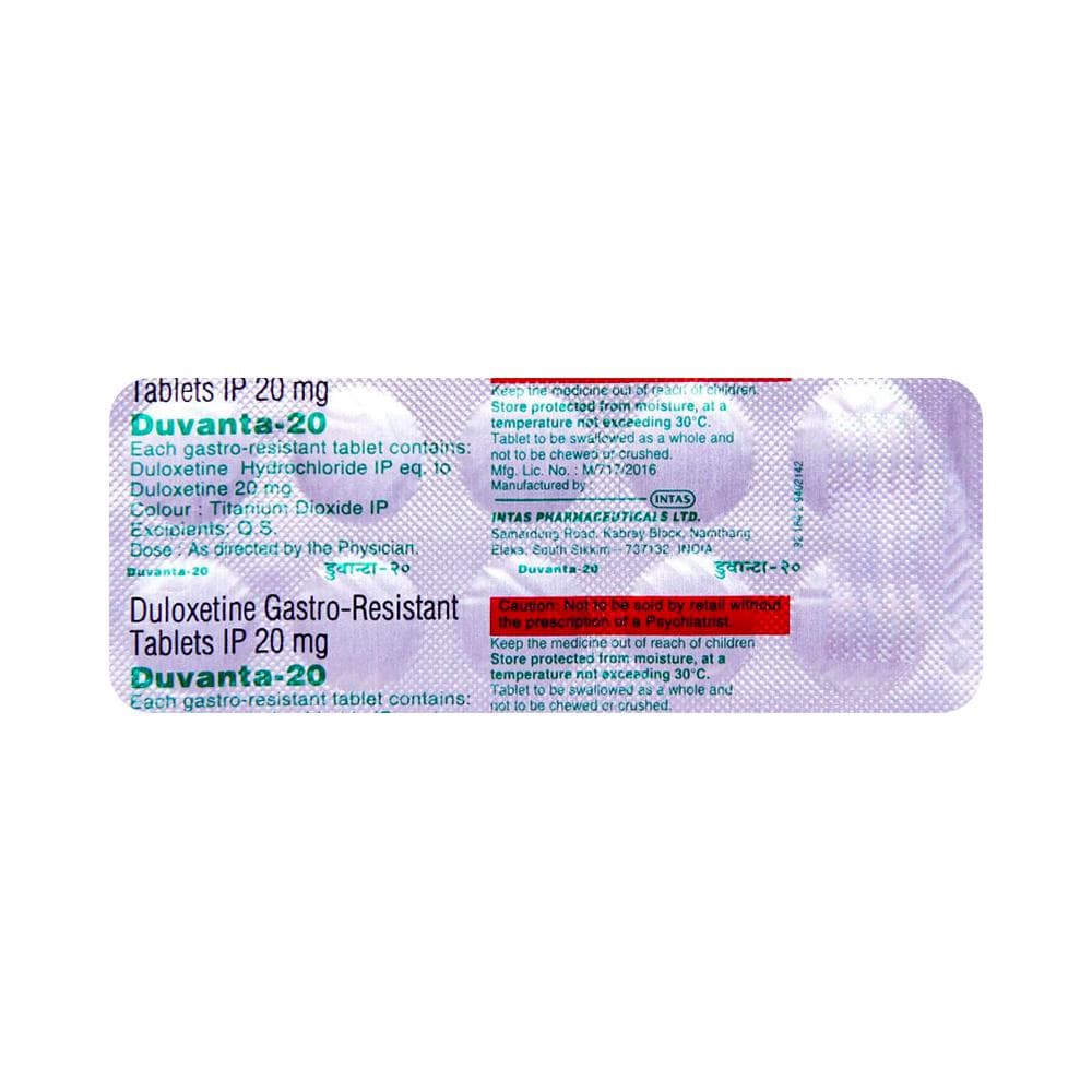 Duvanta 20 Tablet helps in treating depression and anxiety.
