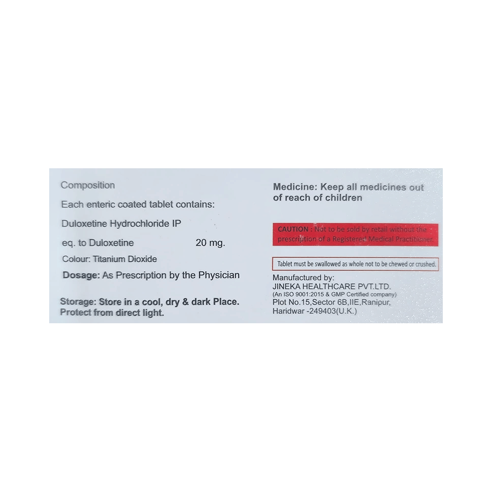 Salt Composition: Duloxetine (20mg)