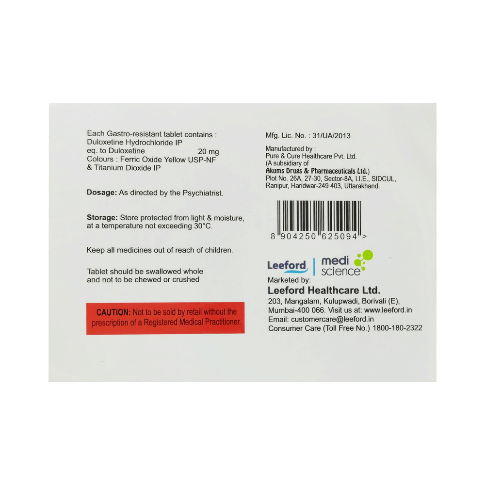 Salt Composition: Duloxetine (20mg)