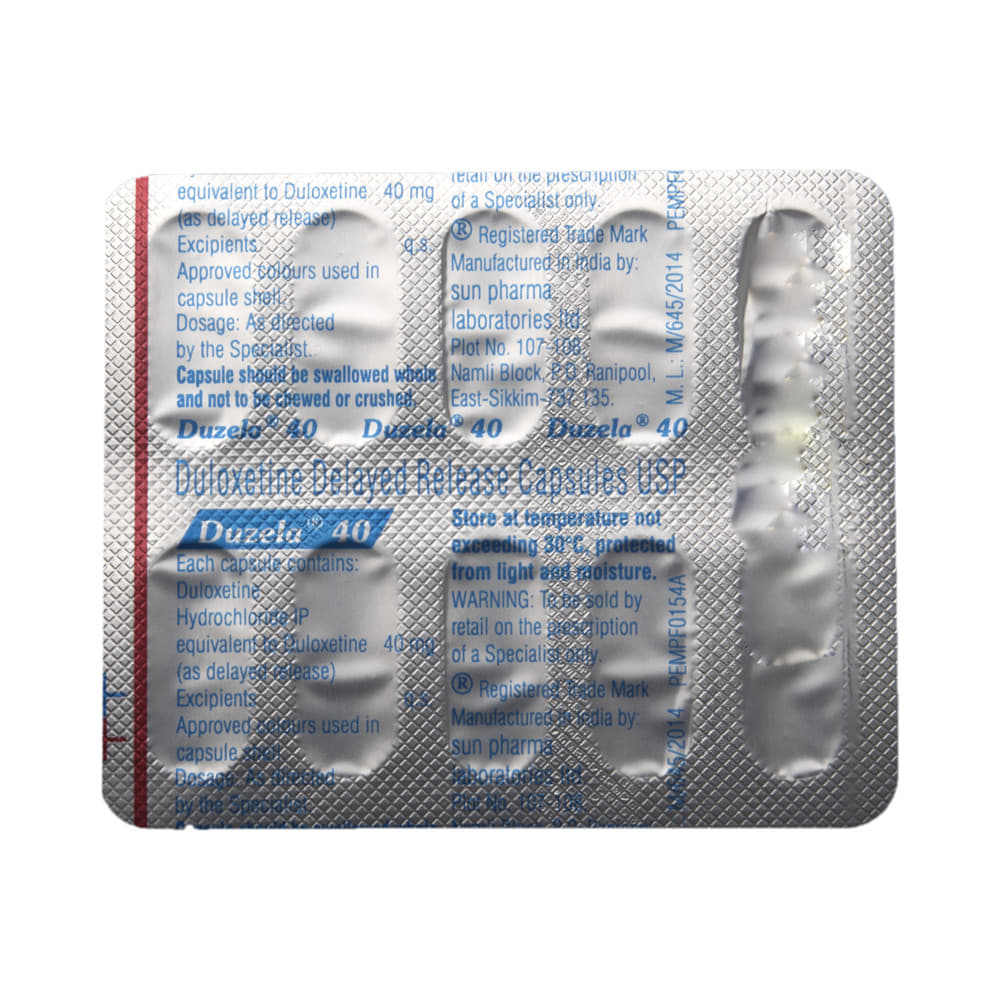 Duzela 40 Capsule DR works by increasing the levels of chemical messengers (serotonin and noradrenaline), natural substances in the brain that help maintain mental balance and stop the movement of pain signals in the brain.