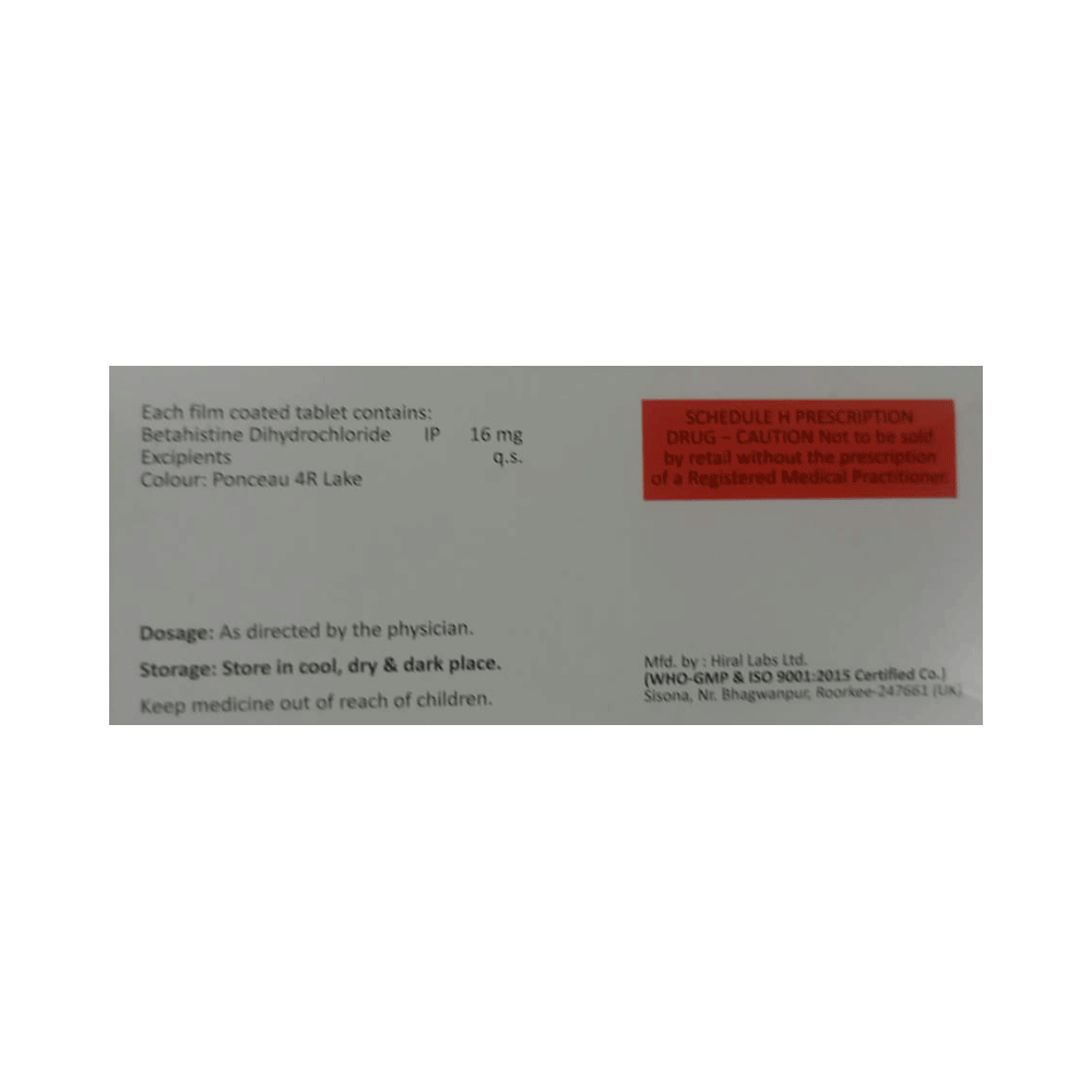 Salt Composition: Betahistine (16mg)