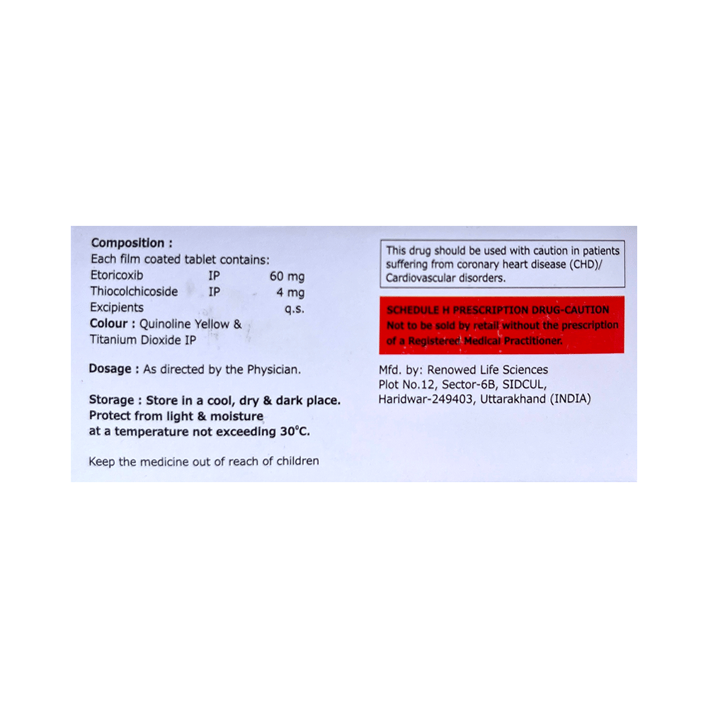 Salt Composition: Etoricoxib (60mg) + Thiocolchicoside (4mg)