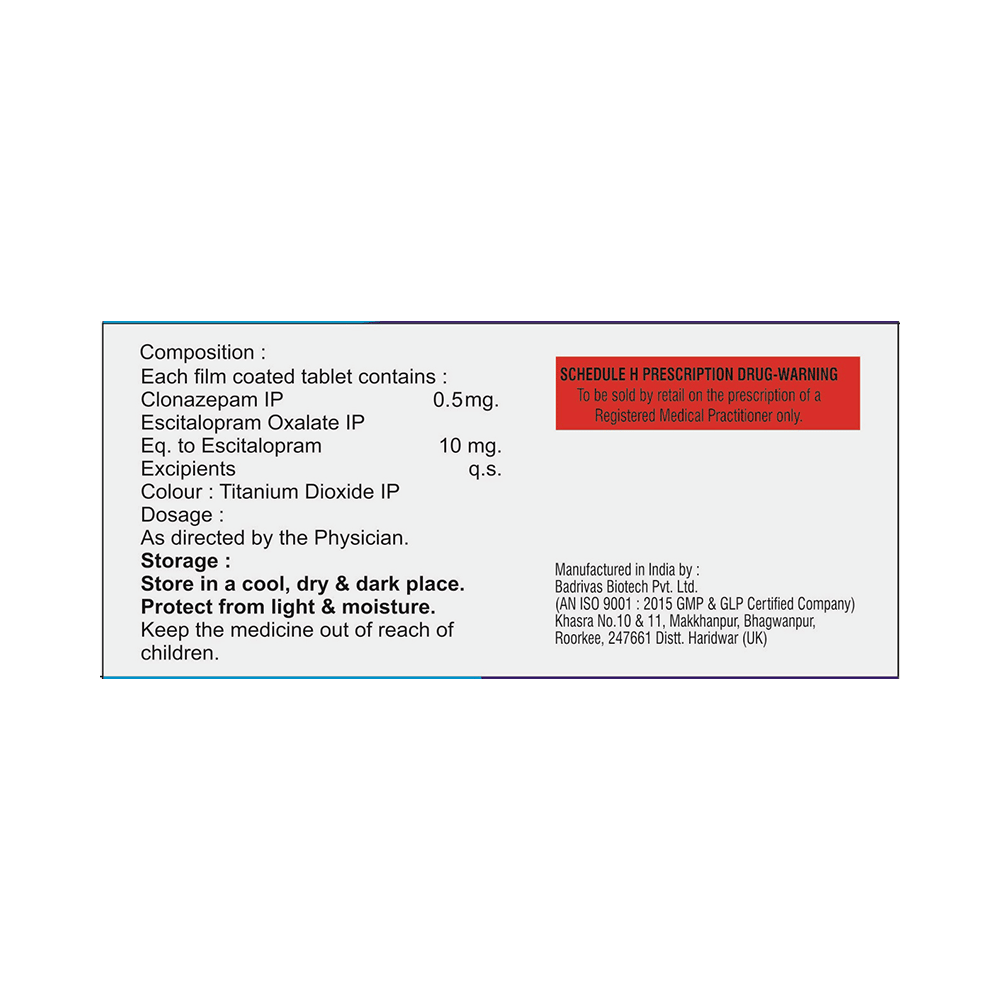 Salt Composition: Clonazepam (0.5mg) + Escitalopram Oxalate (10mg)