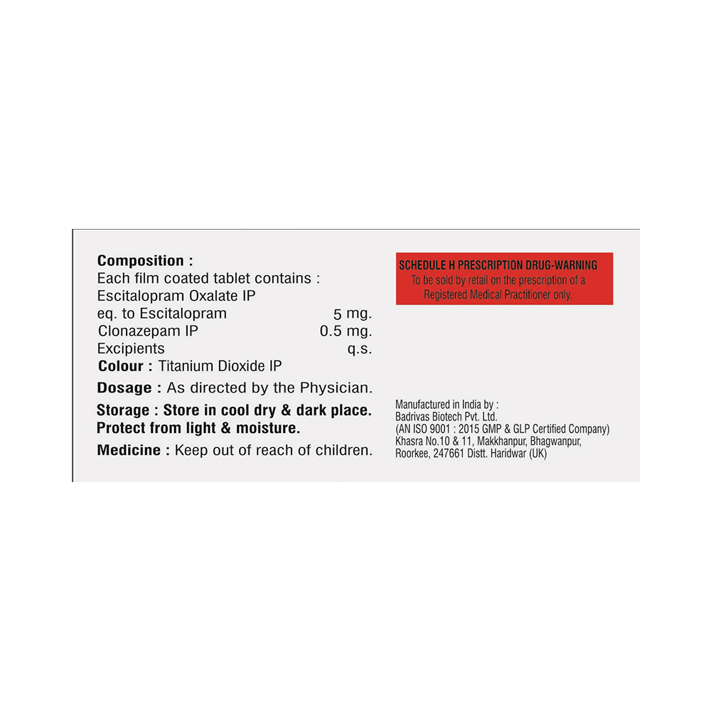 Salt Composition: Clonazepam (0.5mg) + Escitalopram Oxalate (5mg)