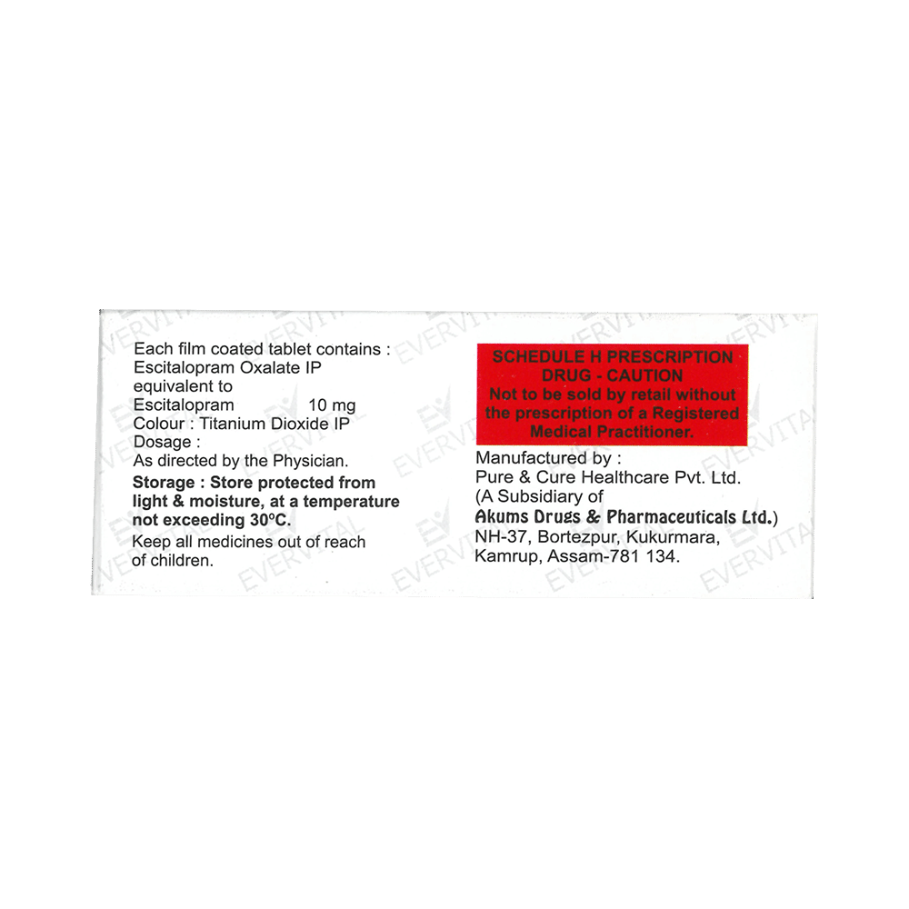 Salt Composition: Escitalopram Oxalate (10mg)