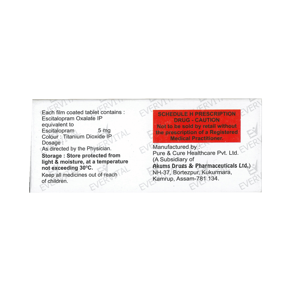 Salt Composition: Escitalopram Oxalate (5mg)
