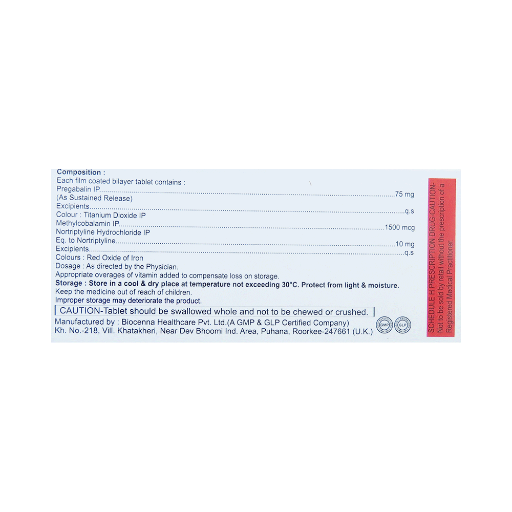 Salt Composition: Pregabalin (75mg) + Nortriptyline (10mg) + Methylcobalamin (1500mcg)