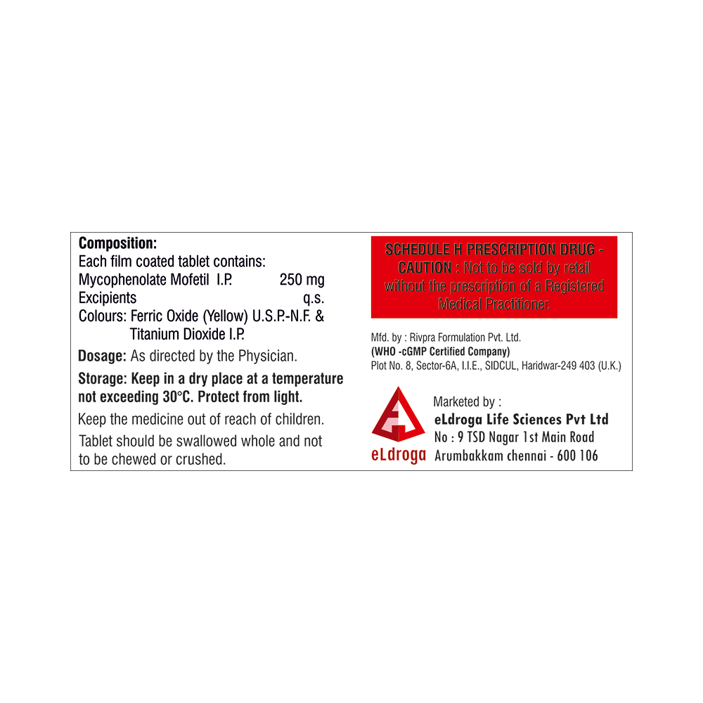Elmyco 250 Tablet is an immunosuppressant. It reduces the action of the body's own defense system (the immune system) and prevents rejection of the transplanted organ.