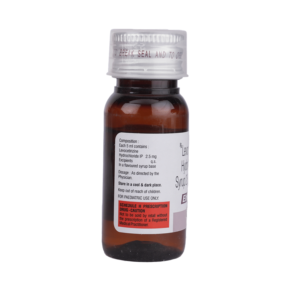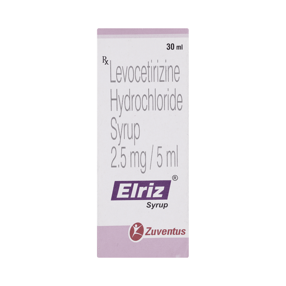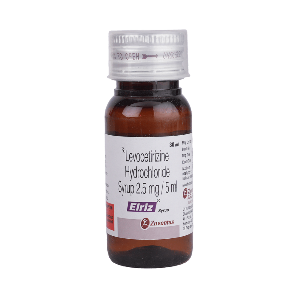 Elriz Syrup belongs to a group of medicines called antihistamines. It is used to treat various allergic conditions such as hay fever, conjunctivitis, and some skin reactions such as eczema, hives, and reactions to bites and stings. It relieves watery eyes, runny nose, sneezing, and itching. Elriz Syrup can be given with or without food. Your required dose may depend on the condition being treated. While this medicine is generally best given to your child in the evening, always follow your doctor’s instructions for proper use. Continue giving for as long as the doctor has prescribed. If it is stopped earlier than advised, your symptoms may come back.The most common side effects include feeling sleepy or dizzy, dry mouth, fatigue, fever, cough, vomiting, and diarrhea. These are usually mild and go away after a couple of days as your body adjusts to it. Consult your doctor if any of the side effects persist or worsen.Before taking it, tell your doctor if you have any kidney problems or epilepsy (seizures). Your dose may need to be modified, or this medicine may not suit you. Certain medications may interact with this one, so inform your doctor about any other medicines you are taking. If you are pregnant or breastfeeding, consult your doctor before use, even though it is not considered harmful.