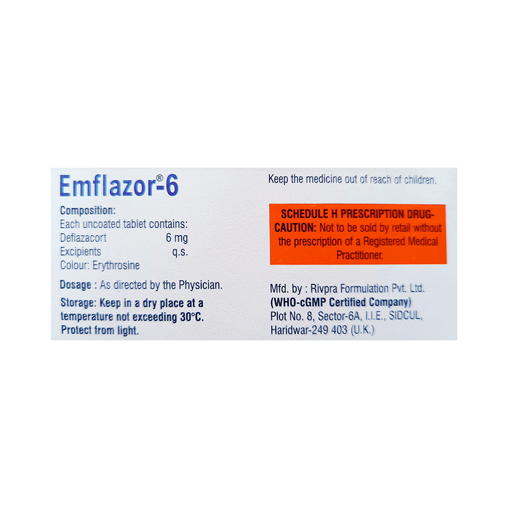 Emflazor 6 Tablet helps treat inflammation, severe allergies, flare-ups of ongoing illnesses, and many other medical problems that require either reduction of inflammation or suppression of the immune system.