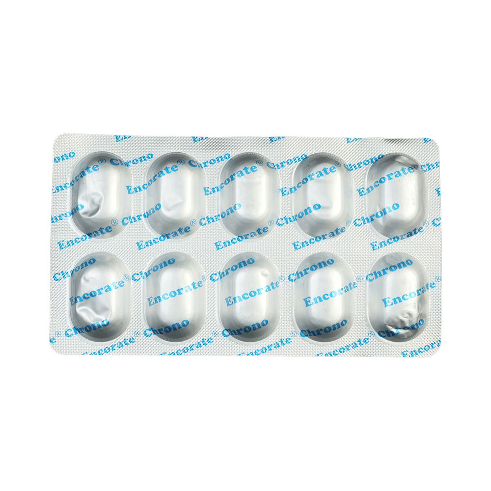 Encorate Chrono 600 Tablet CR is a combination of two medicines used to treat epilepsy, a neurological disorder in which there are recurrent episodes of seizures or fits. It controls the abnormal activity of the brain, relaxes the nerves and hence, prevents seizures or fits. Encorate Chrono 600 Tablet CR should be taken with food. Your doctor will decide the correct dose for you. This may increase gradually until your condition is stable. This medicine may take several weeks to work but it is important to take it regularly to get the benefit. Do not stop taking it, even if you feel fine unless your doctor advises you to. You may have more seizures, or your bipolar disorder may get worse.The most common side effects of this medicine are nausea and tremor. In some people, it may also cause other side effetcs like vomiting, headache, liver injury, and upper abdominal pain. Most side effects wear off, but if they bother you or do not go away, tell your doctor. There may be ways of preventing or reducing these effects.Before taking this medicine, tell your doctor if you have kidney or liver problems, meningitis or depression or suicidal thoughts. Also let your doctor know about all other medications you are using as some may affect, or be affected by, this medicine, including contraceptive pills. If you are pregnant or breastfeeding, Encorate Chrono 600 Tablet CR can be taken if it is clearly needed but the dose may be adjusted. You should avoid driving or riding a bicycle if this medicine makes you drowsy or dizzy. You may need frequent blood tests to check how you are responding to this medicine.You should avoid alcohol while taking Encorate Chrono 600 Tablet CR, as it may worsen certain side effects. This medicine can also lead to weight gain, eat a healthy balanced diet, avoid snacking with high-calorie food, and exercise regularly. Inform your doctor if you develop any unusual changes in mood or behavior, new or worsening depression, or suicidal thoughts or behavior.