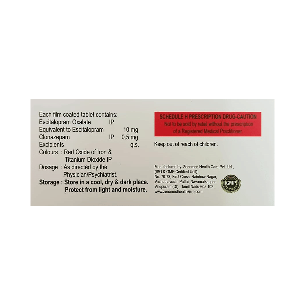 Salt Composition: Clonazepam (0.5mg) + Escitalopram Oxalate (10mg)