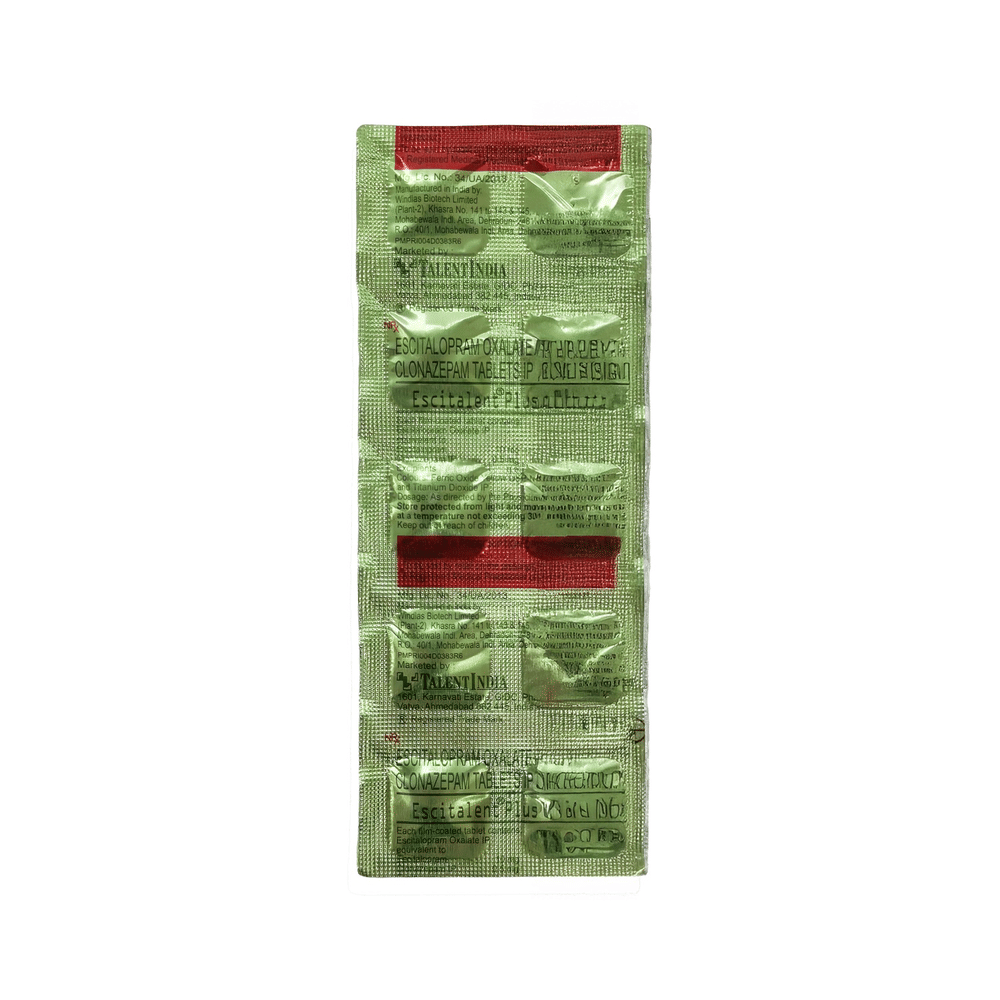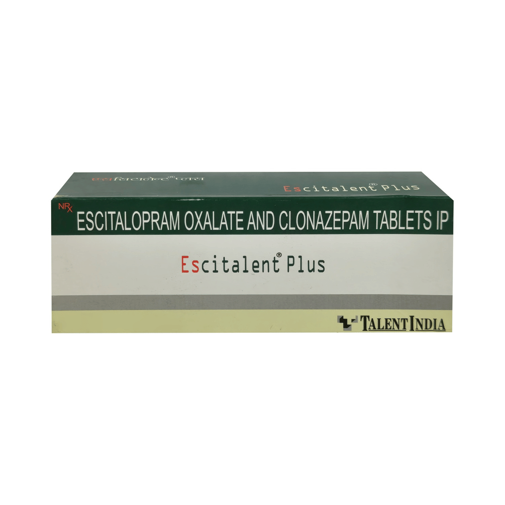 Escitalent Plus Tablet is a prescription medicine used to treat anxiety disorder. It is the combination medicine that calms the brain by decreasing the abnormal and excessive activity of the nerve cells. It also works by increasing the level of a chemical messenger in the brain which improves mood. Escitalent Plus Tablet can be taken with or without food. However, it is advised to take it at the same time each day as this helps to maintain a consistent level of medicine in the body. Take this medicine in the dose and duration advised by your doctor as it has habit-forming potential. If you miss a dose of this medicine, take it as soon as you remember. Finish the full course of treatment even if you feel better. It is important not to stop taking this medicine suddenly as it may cause withdrawal symptoms.Some common side effects of this medicine include delayed ejaculation, low sexual desire, vomiting, memory impairment, depression, and confusion. It may also cause dizziness and sleepiness. So, do not drive or do anything that requires mental focus until you know how this medicine affects you. It may cause weight gain or weight loss depending upon person to person. To prevent weight gain, you can eat a balanced diet and exercise regularly. On the other hand, weight loss can be prevented by increasing food portions in your diet. It is important to inform your doctor if you develop any unusual changes in mood as it can cause suicidal thoughts.Take caution while taking medicine if you are suffering from liver disease. Your doctor should also know about all other medicines you are taking as many of these may make this medicine less effective or change the way it works. Inform your doctor if you are pregnant, planning pregnancy or breastfeeding.