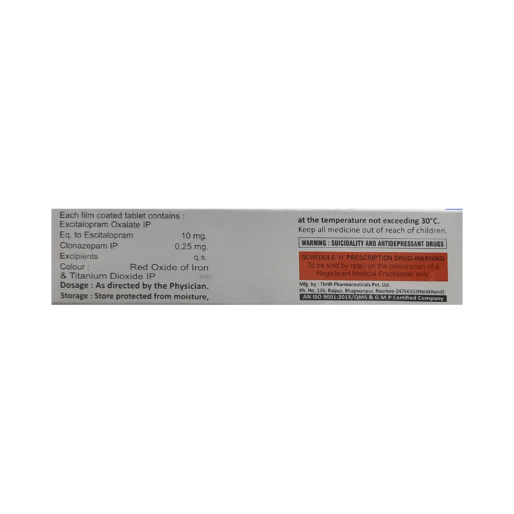 Salt Composition: Clonazepam (0.25mg) + Escitalopram Oxalate (10mg)