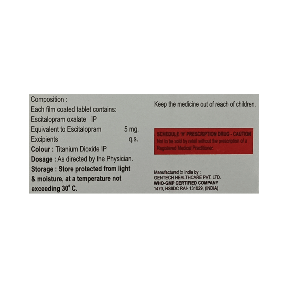 Salt Composition: Escitalopram Oxalate (5mg)