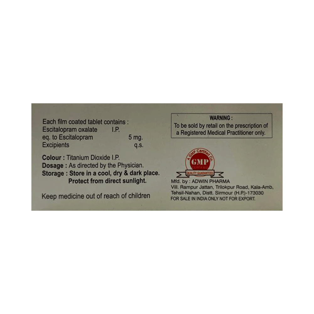 Salt Composition: Escitalopram Oxalate (5mg)