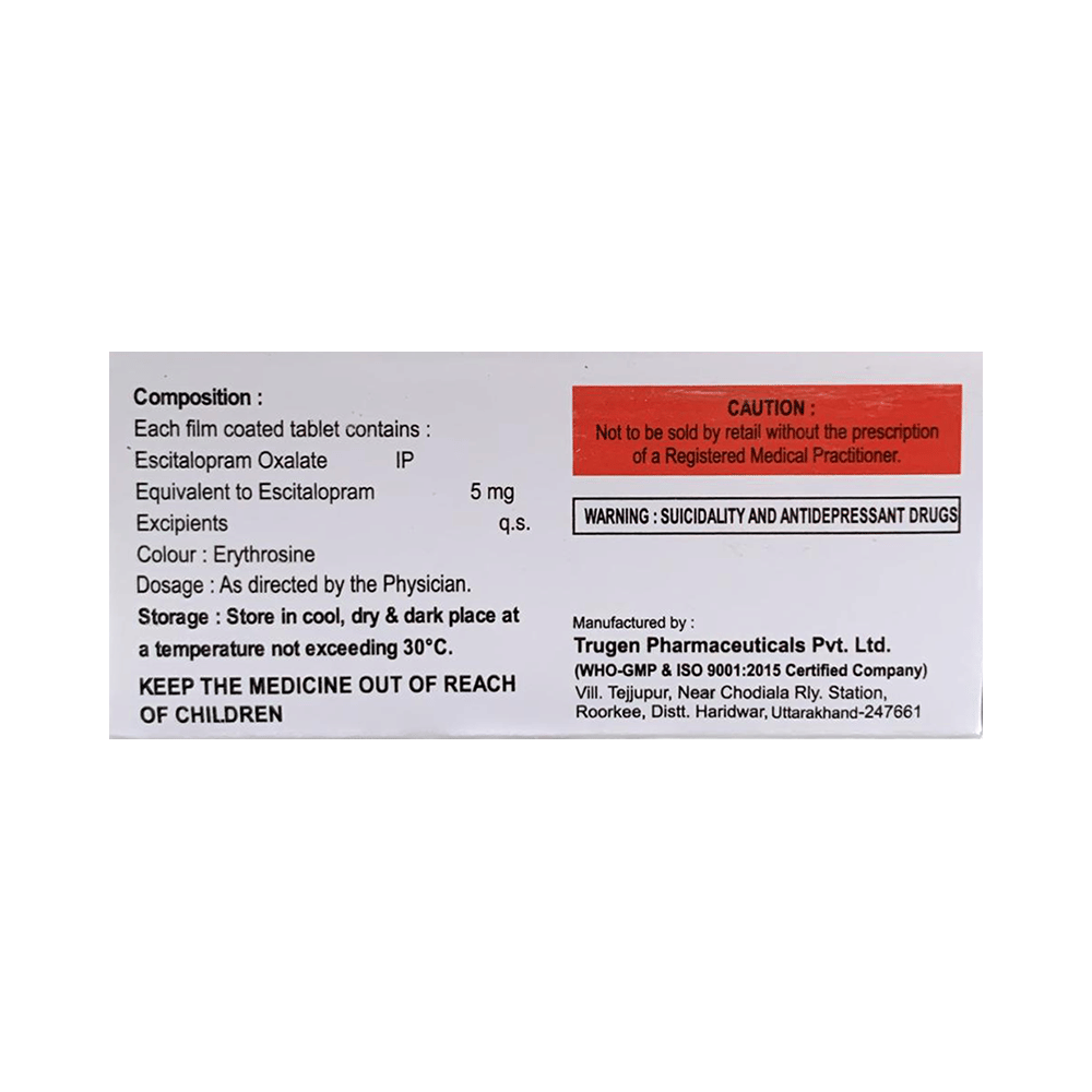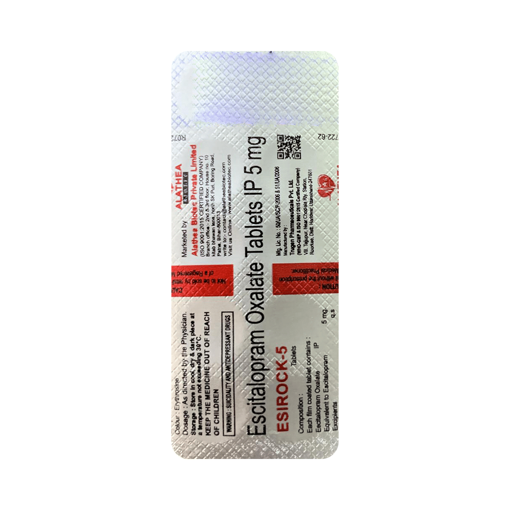 Esirock 5 Tablet is a selective serotonin reuptake inhibitor (SSRI) antidepressant. It works by increasing the levels of serotonin, a chemical messenger in the brain. This improves mood and physical symptoms of depression and also relieves symptoms of anxiety, panic attacks and obsessive-compulsive disorders.