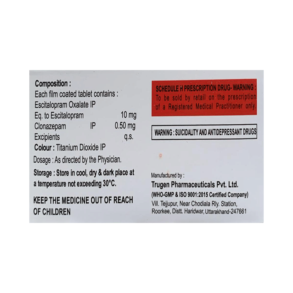 Salt Composition: Clonazepam (0.5mg) + Escitalopram Oxalate (10mg)