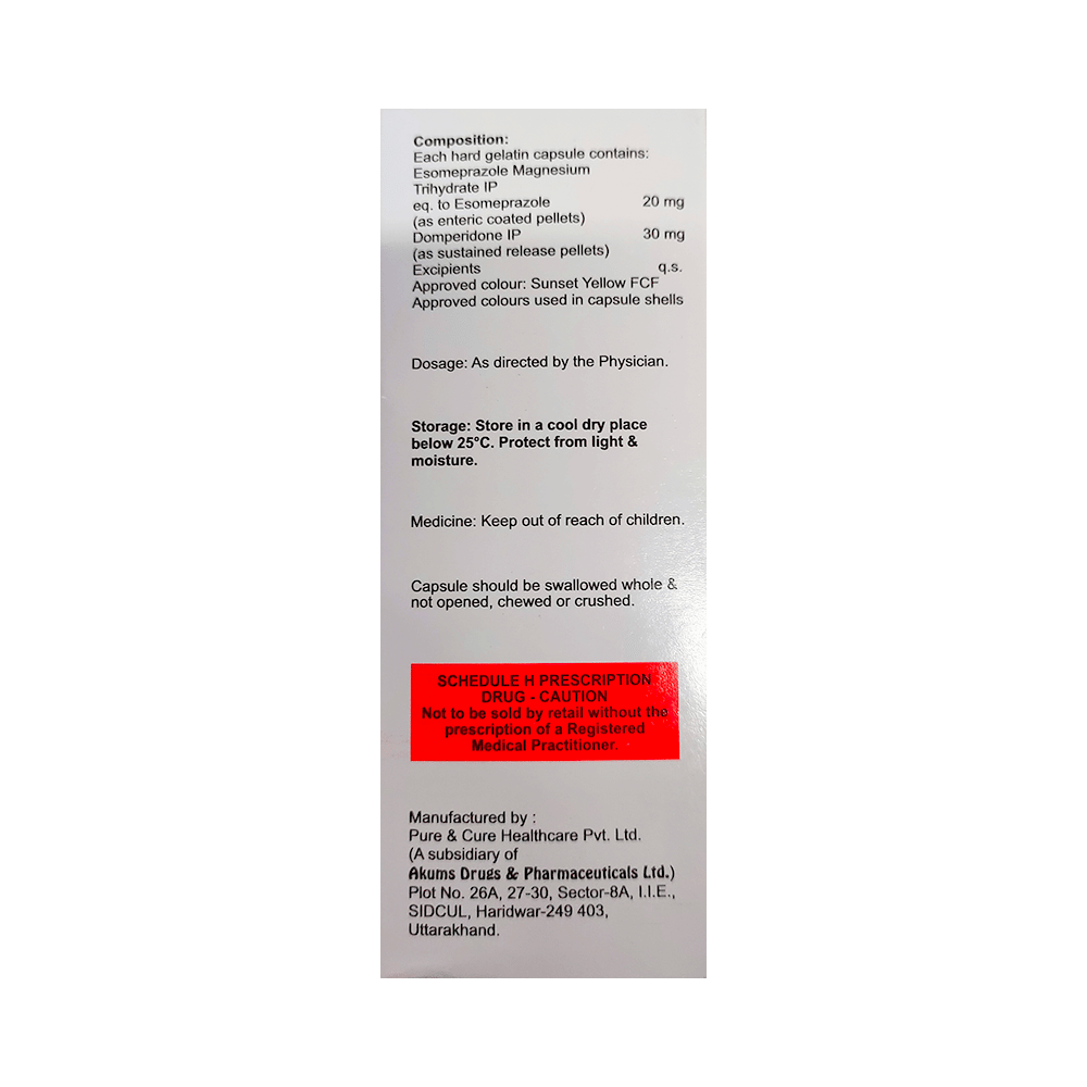 Salt Composition: Domperidone (30mg) + Esomeprazole (20mg)