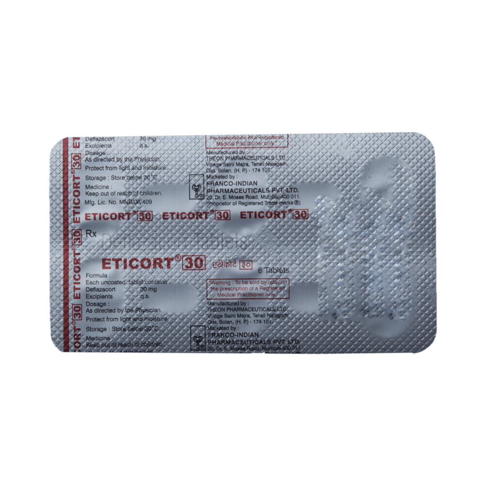 Eticort 30 Tablet helps treat inflammation, severe allergies, flare-ups of ongoing illnesses, and many other medical problems that require either reduction of inflammation or suppression of the immune system.