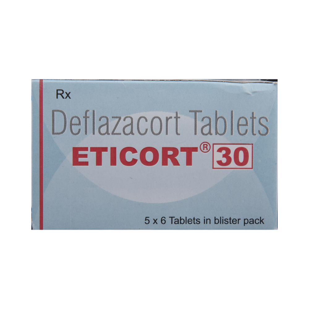 Eticort 30 Tablet belongs to a group of medicines called steroids. It is used for the treatment of various diseases and conditions such as inflammatory conditions and autoimmune conditions. Eticort 30 Tablet works by inhibiting the release of substances that cause swelling or by changing how the immune system works. It can be taken on an empty stomach or after food. Taking the medicine regularly at the right times increases its effectiveness. It is important to keep taking the medicine regularly until your doctor tells you it is safe to stop.Use of this medicine may cause some common side effects such as increased appetite, weight gain, frequent urge to urinate, Cushing syndrome, cough, upper respiratory tract infection, abnormal hair growth, obesity, and nasopharyngitis. If any of these side effects bother you, let your doctor know.Eticort 30 Tablet can make it harder for you to fight off infections. Tell your doctor if you have any signs of infection such as a fever or sore throat. Before taking the medicine, you should let your doctor know of all the other medicines you are taking. Pregnant and breastfeeding women should consult their doctors before taking the medicine.