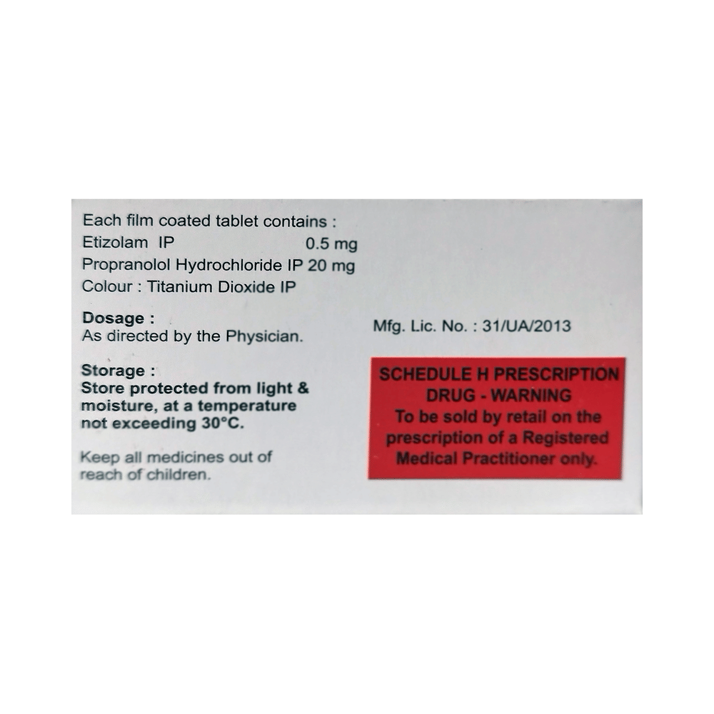 Salt Composition: Etizolam (0.5mg) + Propranolol (20mg)