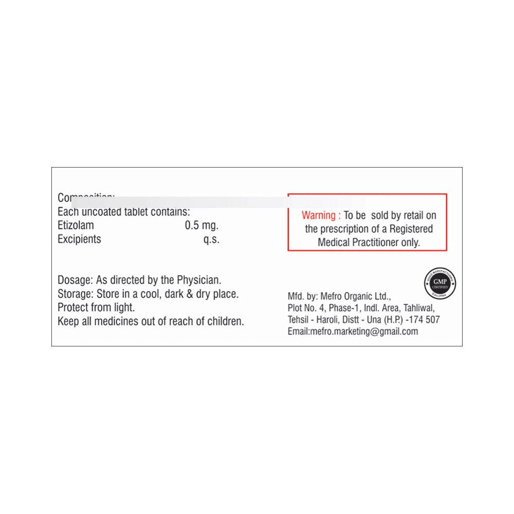 Etiklon 0.5 Tablet is a prescription medicine used to treat short-term anxiety and insomnia. It binds to specific receptor sites in the brain and calms the brain. Therefore, it provides effective relaxation to the brain. Etiklon 0.5 Tablet may be taken with or without food. However, take it at the same time each day, as this helps maintain a consistent level of medicine in the body. Take this medicine in the dose and duration as advised by your doctor, as it has a high potential for habit-forming. Finish the full course of treatment, even if you feel better. You should not stop this medication without talking to your doctor.Some common side effects of this medicine include headaches, sleepiness, vomiting, yawning, and dry mouth. It may cause dizziness and sleepiness, so do not drive or do anything that requires mental focus until you know how this medicine affects you. Talk to your doctor about potential side effects and ways you might prevent or cope with them. You may also get side effects after stopping the treatment.Before taking the medicine, you should tell your doctor if you are pregnant, planning to become pregnant, or breastfeeding. Etiklon 0.5 Tablet can usually be mixed safely with other medicines, but some medicines, and alcohol, do affect the way it works and can increase the chance of side effects. If you have been taking this medicine for a long time, then regular monitoring of blood and liver functions may be required.