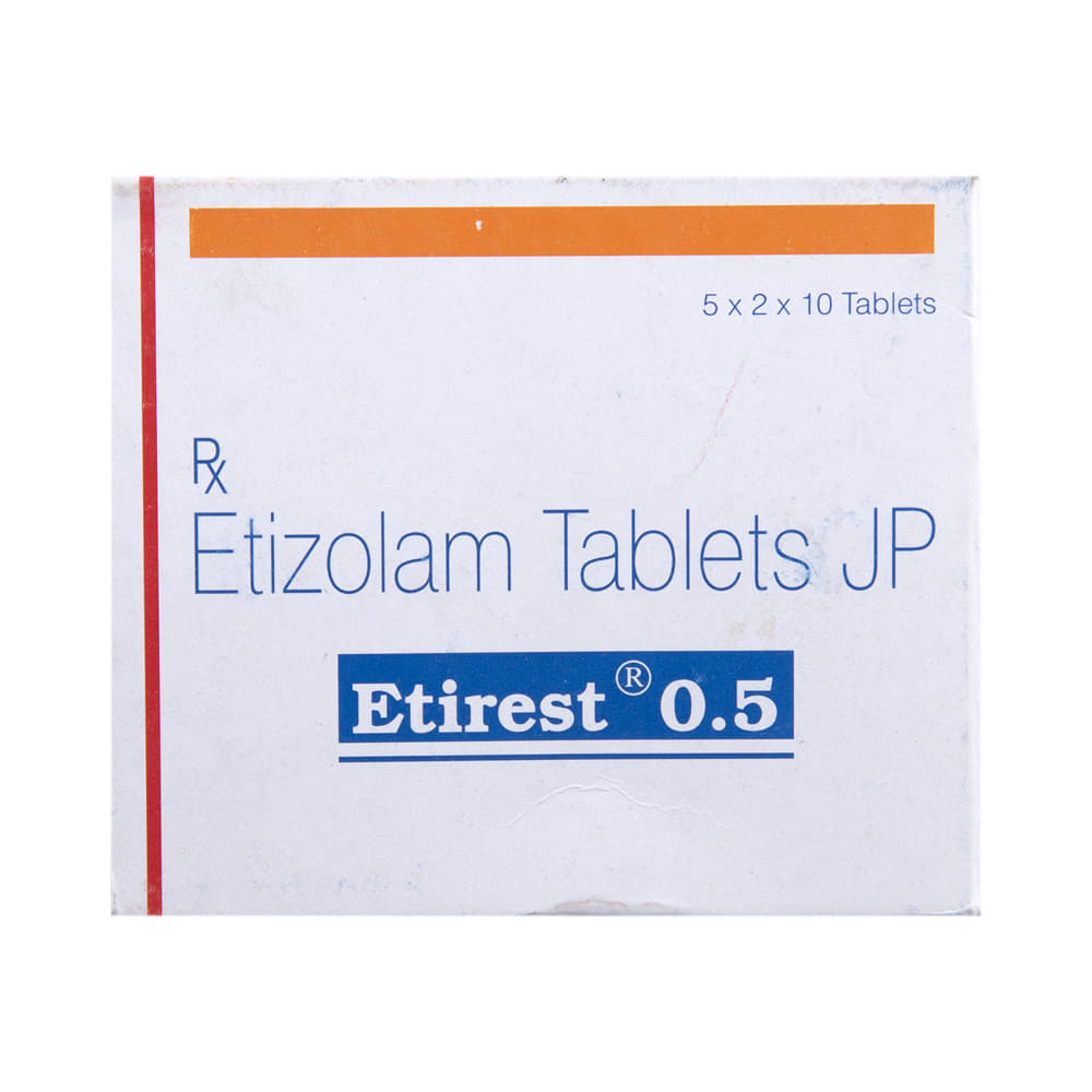 Etirest 0.5 Tablet is a prescription medicine used to treat short-term anxiety and insomnia. It binds to specific receptor sites in the brain and calms the brain. Therefore, it provides effective relaxation to the brain. Etirest 0.5 Tablet may be taken with or without food. However, take it at the same time each day, as this helps maintain a consistent level of medicine in the body. Take this medicine in the dose and duration as advised by your doctor, as it has a high potential for habit-forming. Finish the full course of treatment, even if you feel better. You should not stop this medication without talking to your doctor.Some common side effects of this medicine include headaches, sleepiness, vomiting, yawning, and dry mouth. It may cause dizziness and sleepiness, so do not drive or do anything that requires mental focus until you know how this medicine affects you. Talk to your doctor about potential side effects and ways you might prevent or cope with them. You may also get side effects after stopping the treatment.Before taking the medicine, you should tell your doctor if you are pregnant, planning to become pregnant, or breastfeeding. Etirest 0.5 Tablet can usually be mixed safely with other medicines, but some medicines, and alcohol, do affect the way it works and can increase the chance of side effects. If you have been taking this medicine for a long time, then regular monitoring of blood and liver functions may be required.