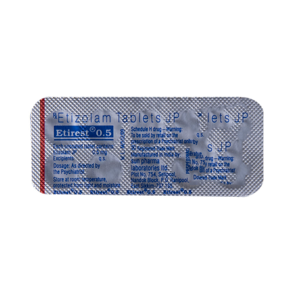 In Treatment of InsomniaEtirest 0.5 Tablet helps treat insomnia (difficulty falling or staying asleep) in people who have problems related to their sleeping habits. Insomnia may cause you to wake up earlier than usual and you may find it difficult to go back to sleep. Etirest 0.5 Tablet works by slowing activity in the brain to allow sleep. This helps you relax and feel more energetic. It also helps you concentrate better and improves your quality of life.In Treatment of Short term anxietyEtirest 0.5 Tablet reduces the symptoms of excessive anxiety and worry that are triggered only at the time of stressful conditions that last for a shorter duration. These could be job interviews, exams, stage performances, etc. It can effectively manage feelings of restlessness, tiredness, difficulty concentrating and feeling irritable. Etirest 0.5 Tablet will therefore help you go about your daily activities more easily and be more productive. Keep taking this medicine even if you feel well. Stopping suddenly can cause serious problems.show moreshow less
