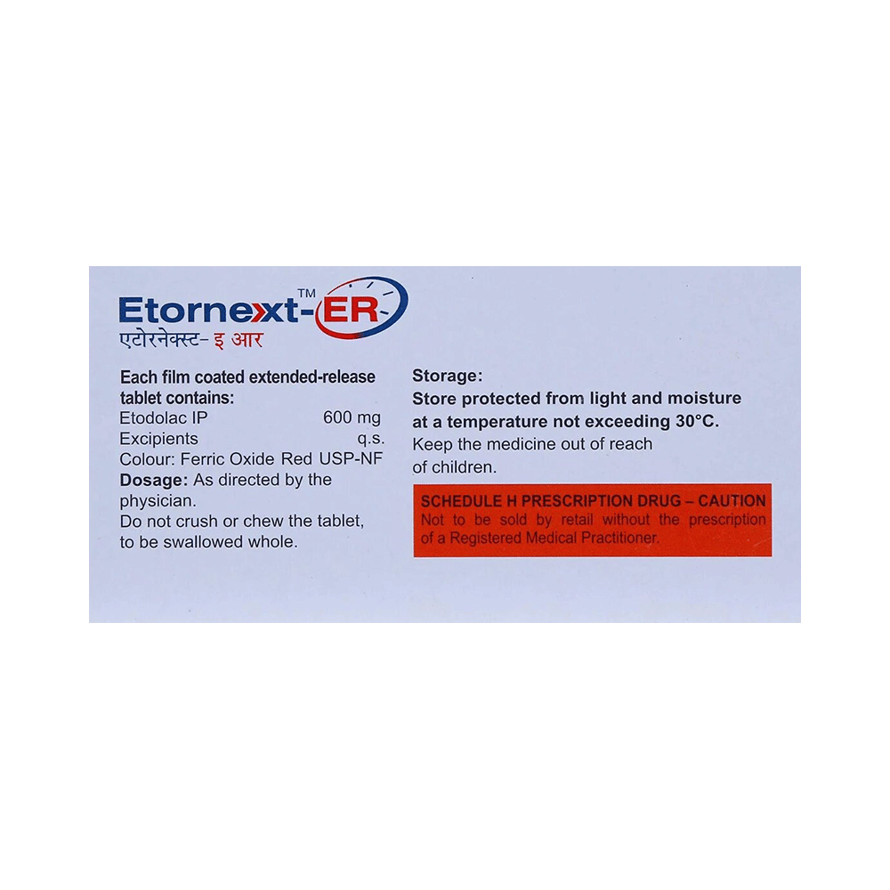 Etornext-ER Tablet is a non-steroidal anti-inflammatory drug (NSAID). It works by blocking the release of certain chemical messengers that cause pain and inflammation (redness and swelling).