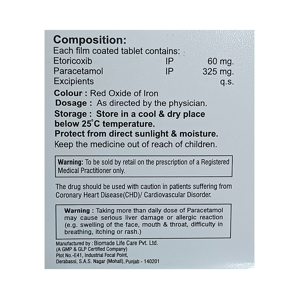 Salt Composition: Etoricoxib (60mg) + Paracetamol (325mg)