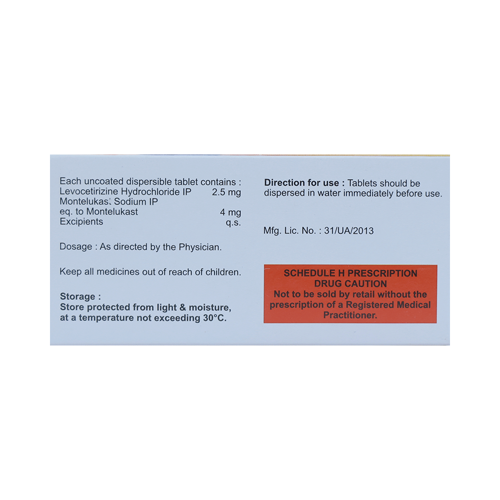 Salt Composition: Levocetirizine (2.5mg) + Montelukast (4mg)