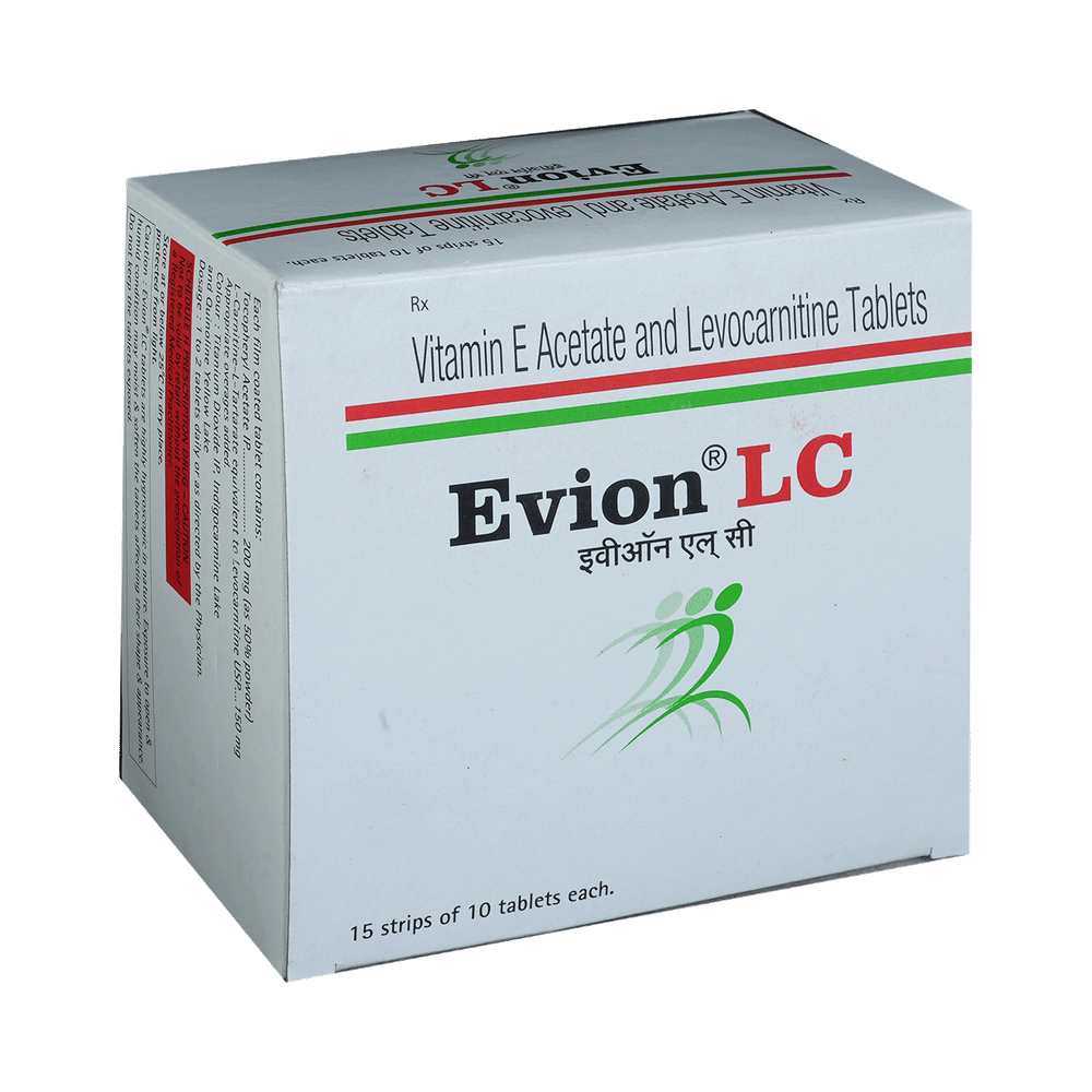 Evion LC Tablet is a prescription medicine. This is a combination of medicines that is prescribed to treat muscle cramps. It helps to strengthen and improve the muscles to make them stronger. It also helps treat carnitine deficiency and ensures the proper growth and functioning of the body. Evion LC Tablet may be taken with or without food. It should be used in the dose and duration as prescribed by your doctor. It is advised to take this medicine at a fixed time.This medicine should not be taken more than the recommended dose. It is usually a safe medicine with very minimal or no side effects. However, if you experience severe diarrhea, vomiting, or constipation, you should consult your doctor without delay.Before taking this medicine, tell your doctor if you have any other health conditions. Inform your doctor if you are taking any other medicines or if you are pregnant or breastfeeding.