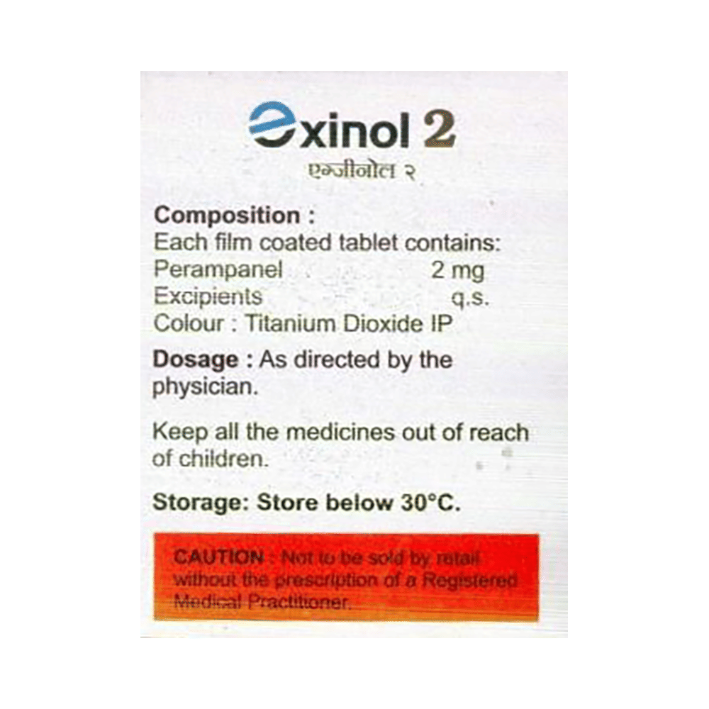 Exinol 2 Tablet is an antiepileptic medication. It prevents seizures in patients with epilepsy by blocking a receptor in the brain known as the glutamate receptor, thereby suppressing the abnormal and excessive activity of the nerve cells in the brain.