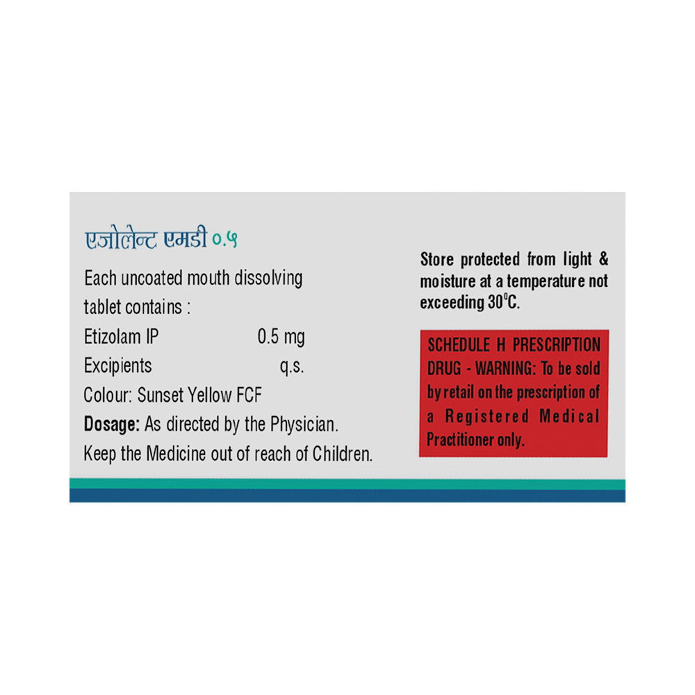 Ezolent-MD 0.5 Tablet is a prescription medicine used to treat short-term anxiety and insomnia. It binds to specific receptor sites in the brain and calms the brain. Therefore, it provides effective relaxation to the brain. Ezolent-MD 0.5 Tablet may be taken with or without food. However, take it at the same time each day, as this helps maintain a consistent level of medicine in the body. Take this medicine in the dose and duration as advised by your doctor, as it has a high potential for habit-forming. Finish the full course of treatment, even if you feel better. You should not stop this medication without talking to your doctor.Some common side effects of this medicine include headaches, sleepiness, vomiting, yawning, and dry mouth. It may cause dizziness and sleepiness, so do not drive or do anything that requires mental focus until you know how this medicine affects you. Talk to your doctor about potential side effects and ways you might prevent or cope with them. You may also get side effects after stopping the treatment.Before taking the medicine, you should tell your doctor if you are pregnant, planning to become pregnant, or breastfeeding. Ezolent-MD 0.5 Tablet can usually be mixed safely with other medicines, but some medicines, and alcohol, do affect the way it works and can increase the chance of side effects. If you have been taking this medicine for a long time, then regular monitoring of blood and liver functions may be required.
