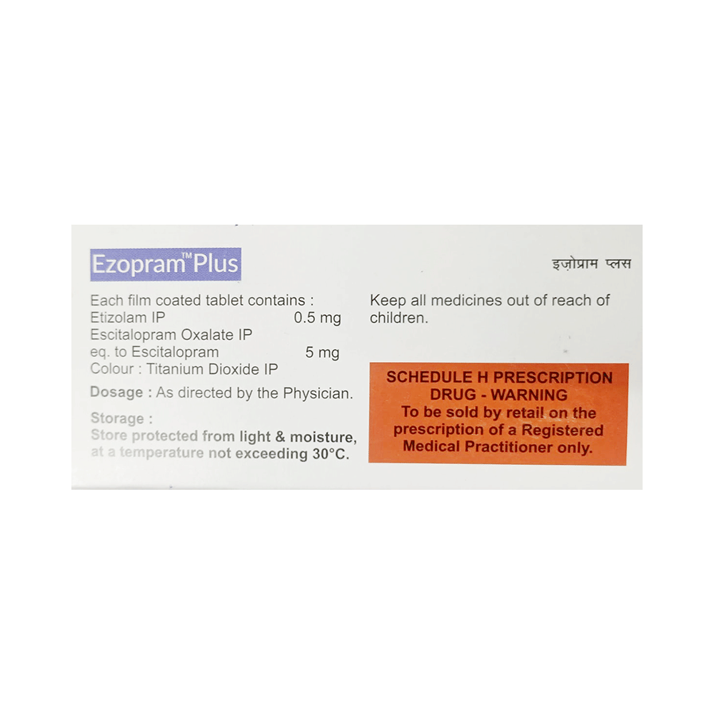Ezopram Plus Tablet is a prescription medicine used to treat depression. It is a combination medicine that calms the brain by decreasing the abnormal and excessive activity of the nerve cells. It also increases the level of chemical messenger in the brain which improves mood. Ezopram Plus Tablet can be taken with or without food. However, it is advised to take it at the same time each day as this helps to maintain a consistent level of medicine in the body. Take this medicine in the dose and duration advised by your doctor as it has habit-forming potential. If you miss a dose of this medicine, take it as soon as you remember. Finish the full course of treatment even if you feel better. It is important not to stop taking this medicine suddenly as this may cause withdrawal symptoms.Some common side effects of this medicine include nausea, vomiting, diarrhea, confusion, memory impairment, low sexual desire, and delayed ejaculation. It may also cause dizziness and sleepiness. So, do not drive or do anything that requires mental focus until you know how this medicine affects you. Remember to inform your doctor if you develop any unusual changes in mood as it can cause suicidal thoughts and can be dangerous for you. This medicine may cause weight gain and to control it, you should have a balanced diet and exercise regularly.Take caution while taking medicine if you are suffering from liver disease. Your doctor should also know about all other medicines you are taking as many of these may make this medicine less effective or change the way it works. Inform your doctor if you are pregnant, planning pregnancy or breastfeeding.