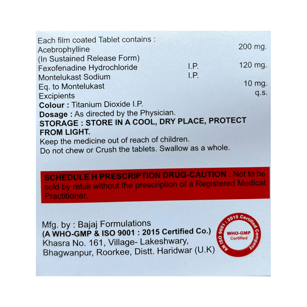 Salt Composition: Montelukast (10mg) + Fexofenadine (120mg) + Acebrophylline (200mg)