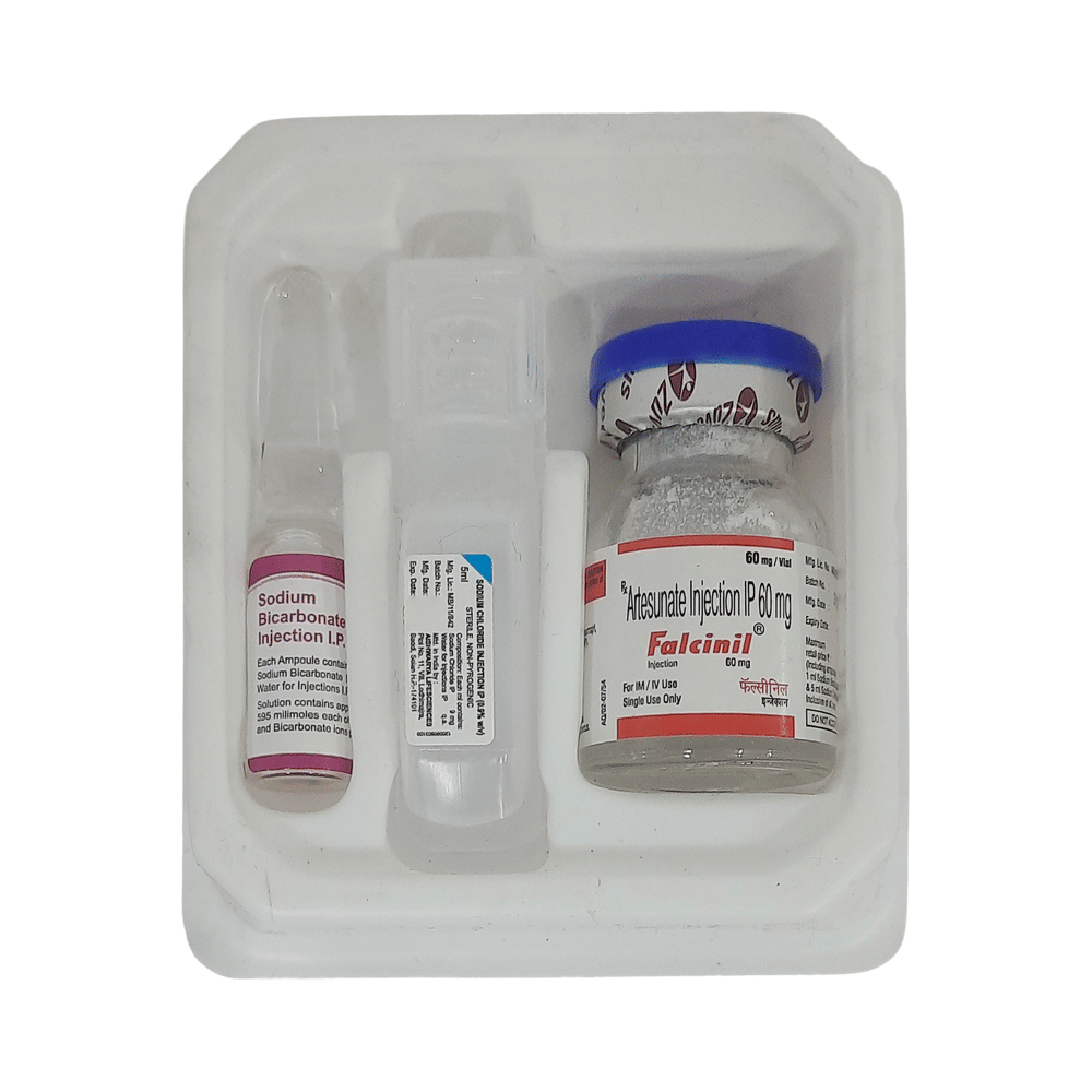 In MalariaFalcinil 60mg Injection is an antimalarial medicine and is used alone or with other medications to treat malaria (a serious or life-threatening illness that is spread by a parasite that enters the human body by the bite of infected mosquitoes). This medicine is given by a doctor or nurse and should not be self-administered. Refrain from taking any other medicines or antacids along with this medicine (unless advised by the doctor) as they may affect the absorption of this medicine. Do not use this medicine for treating any other condition without consulting your doctor.