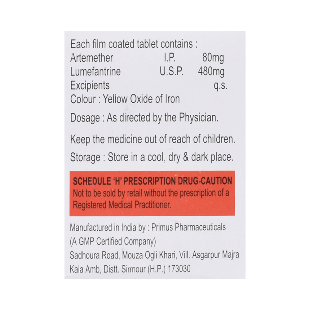 Salt Composition: Arteether (80mg) + Lumefantrine (480mg)